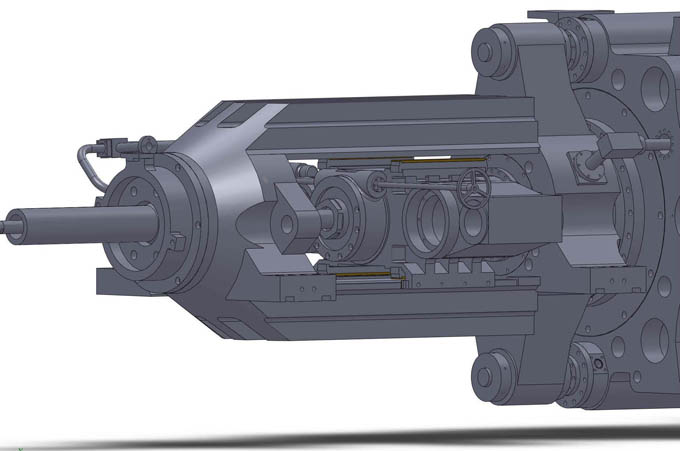 5)整個機(jī)構(gòu)為整體式結(jié)構(gòu),結(jié)構(gòu)緊湊更容易實現(xiàn)雙動擠壓機(jī)穿孔系統(tǒng)要求的同心度,加工制作相對容易。